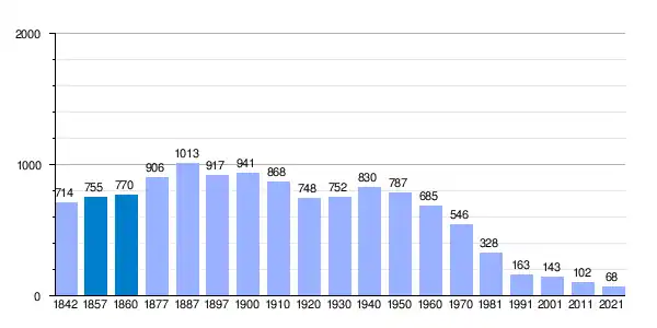| Gráfica de evolución demográfica de La Alameda de Gardón[6] entre 1842 y 2021 |