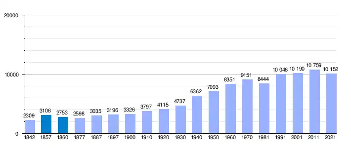 | Gráfica de evolución demográfica de La Bañeza[15] entre 1842 y 2021 |