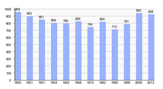 Los datos demográficos contemplados en este gráfico de la comuna de La Barre-en-Ouche[4] se han cogido de 1800 a 1999 de la página francesa EHESS/Cassini, y los demás datos de la página del INSEE.[5]