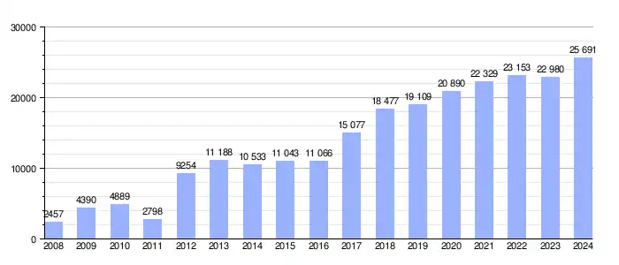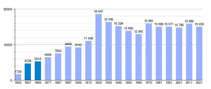 | Gráfica de evolución demográfica de La Carolina[6] entre 1842 y 2021 |