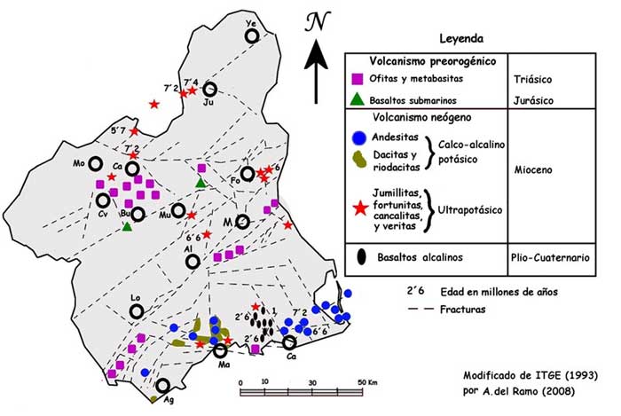 - Mapa de situación de todos los volcanes que hay en Murcia