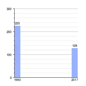 | Gráfica de evolución demográfica de La Cofradía entre 1993 y 2017 |