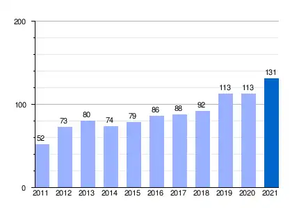| Gráfica de evolución demográfica de La Colomera entre 2011 y 2021 |