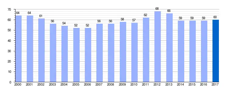 | Gráfica de evolución demográfica de La Devesa de Boñar entre 2000 y 2017 |