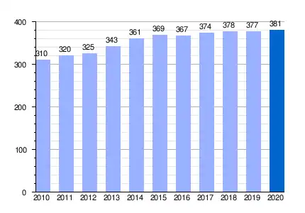 | Gráfica de evolución demográfica de La Fábrica entre 2010 y 2020 |