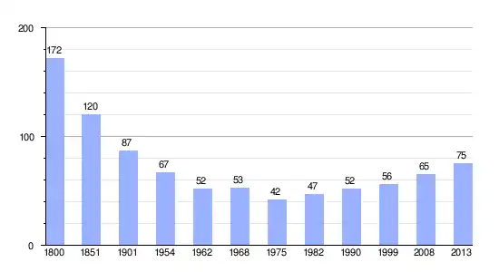 Los datos demográficos contemplados en este gráfico de la comuna de La Folletière[4] se han cogido de 1800 a 1999 de la página francesa EHESS/Cassini, y los demás datos de la página del INSEE.[5]