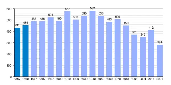 Población de derecho según los censos de población del INE Población de hecho según los censos de población del INEEn 1857 aparece este municipio porque se segrega del municipio Vallés[2] |
