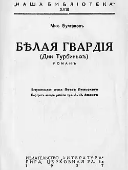 La Guardia Blanca (en ruso: Белая гвардия) es una novela del escritor y dramaturgo ruso Mijaíl Bulgákov de 1924.