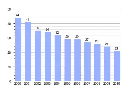 | Gráfica de evolución demográfica de La Hinojosa (Soria) entre 2000 y 2010 |