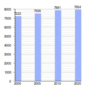En 2020 el 49% de la población (3894 personas) eran hombres y el 51% (4060 personas) eran mujeres. El 61.8% de la población, (4912 personas), tenía edades comprendidas entre los 15 y los 64 años.[7]