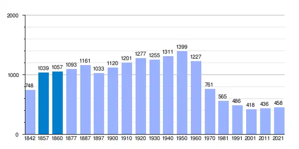| Gráfica de evolución demográfica de La Iglesuela[9] entre 1842 y 2021 |