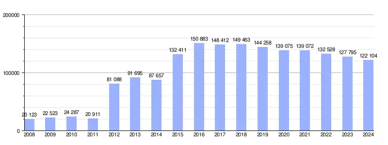 - ↑ Instituto Nacional de Estadística, España. (ed.). «Población por sexo, municipios y nacionalidad (principales nacionalidades). La Línea de la Concepción».