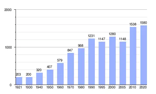En 2020 registró una población de 1580 personas, lo que corresponde al 0.94 % de la población municipal.[7] De los cuales 757 son hombres y 823 son mujeres.[7]