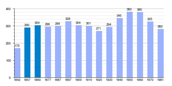 | Gráfica de evolución demográfica de La Mata de Armuña[4] entre 1842 y 1981 |