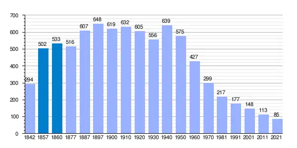 Gráfica de evolución demográfica de La Mata de Ledesma[7]​ entre 1842 y 2021