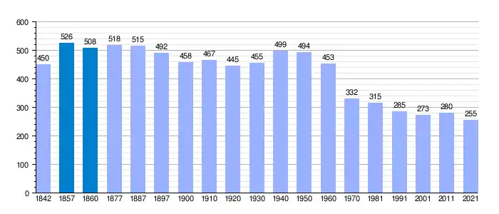 | Gráfica de evolución demográfica de La Mata de los Olmos[5] entre 1842 y 2021 |