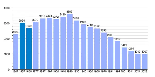 | Gráfica de evolución demográfica de A Mezquita[4] entre 1842 y 2023 |