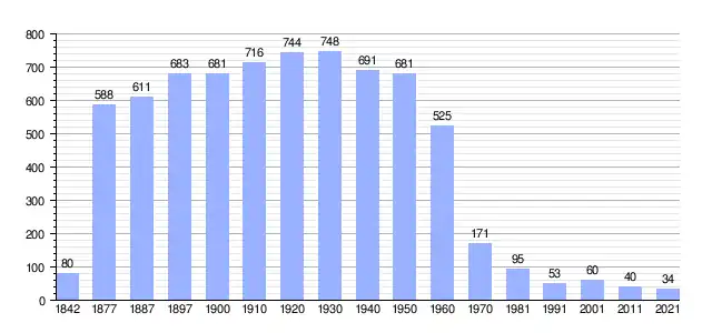 | Gráfica de evolución demográfica de La Miñosa[2] entre 1842 y 2021 |