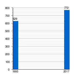 | Gráfica de evolución demográfica de La Noria entre 1993 y 2017 |