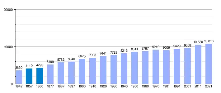 | Gráfica de evolución demográfica de La Palma del Condado[3] entre 1842 y 2021 |