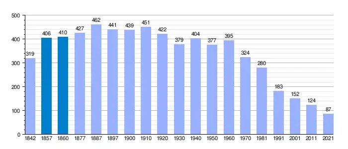| Gráfica de evolución demográfica de La Peña[12] entre 1842 y 2021 |