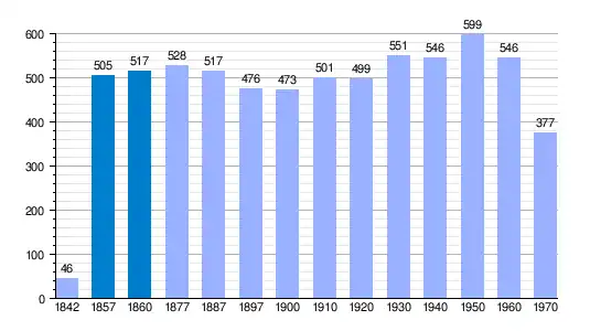 | 1842 | 1857 | 1860 | 1877 | 1887 | 1897 | 1900 | 1910 | 1920 | 1930 | 1940 | 1950 | 1960 | 1970 |