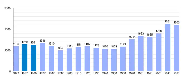 | Gráfica de evolución demográfica de La Pobla de Claramunt[2] entre 1842 y 2021 |