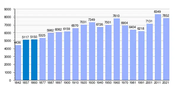 Gráfica de evolución demográfica de La Puebla de Montalbán[3]​ entre 1842 y 2021