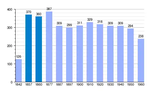 | Gráfica de evolución demográfica de La Puebla de Roda[3] entre 1842 y 1960 |
