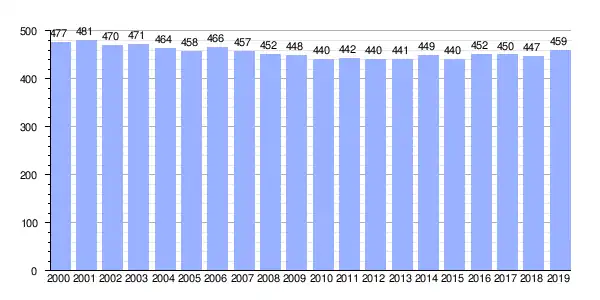 | Gráfica de evolución demográfica de La Puebla del Caramiñal entre 2000 y 2019 |