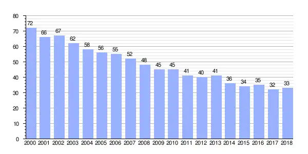 | Gráfica de evolución demográfica de Riva (aldea) entre 2000 y 2018 |