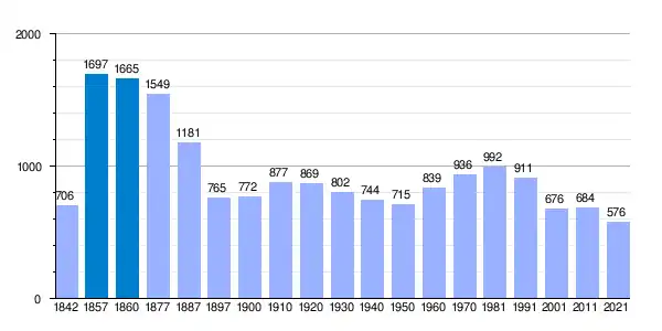 | Gráfica de evolución demográfica de La Riba[2] entre 1842 y 2021 |