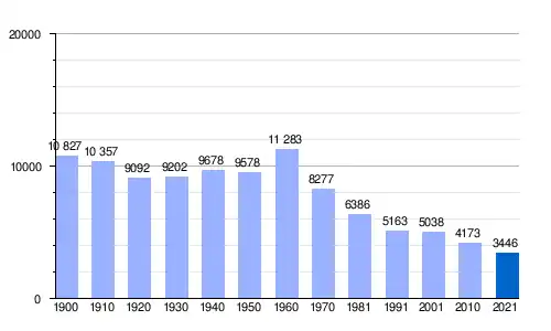 Población de derecho (1900-1991) o población residente (2001, 2010) según los censos de población del INE Población según el padrón municipal de 2021 del INE |