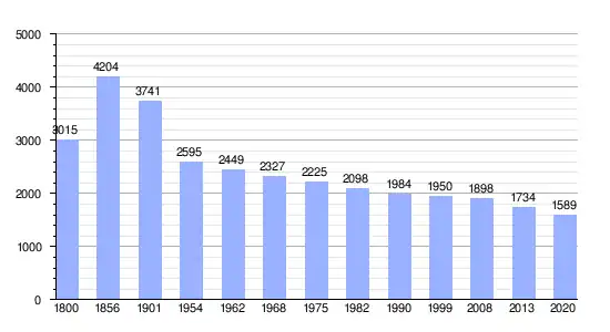 | Gráfica de evolución demográfica de La Vôge-les-Bains entre 1800 y 2020 |