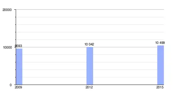 | Gráfica de evolución demográfica de La Vallée de Bainet entre 2009 y 2015 |