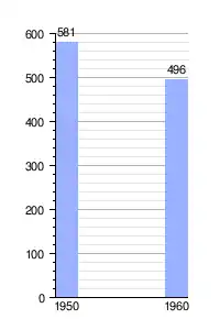 | Gráfica de evolución demográfica de Villa de Ocón[1] entre 1950 y 1960 |