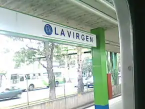 La Virgen es una estación del Tren Ligero de la Ciudad de México de tipo superficial. Su nombre proviene de la cercana Calzada de La Virgen que comienza cerca de la estación. El logo representa la imagen estilizada del rostro de la Virgen de Guadalupe.