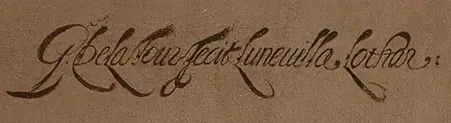 El cuadro está firmado G. De La Tour Fecit Lunevillæ Lothar («G[eorges] de La Tour [lo] hizo, en Lunéville, Lorena»).[6]