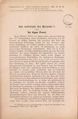 - ↑ a b Freud, Sigmund. «The Aetiology of Hysteria». The Standard Edition of the Complete Psychological Works of Sigmund Freud III. pp. 189-221.