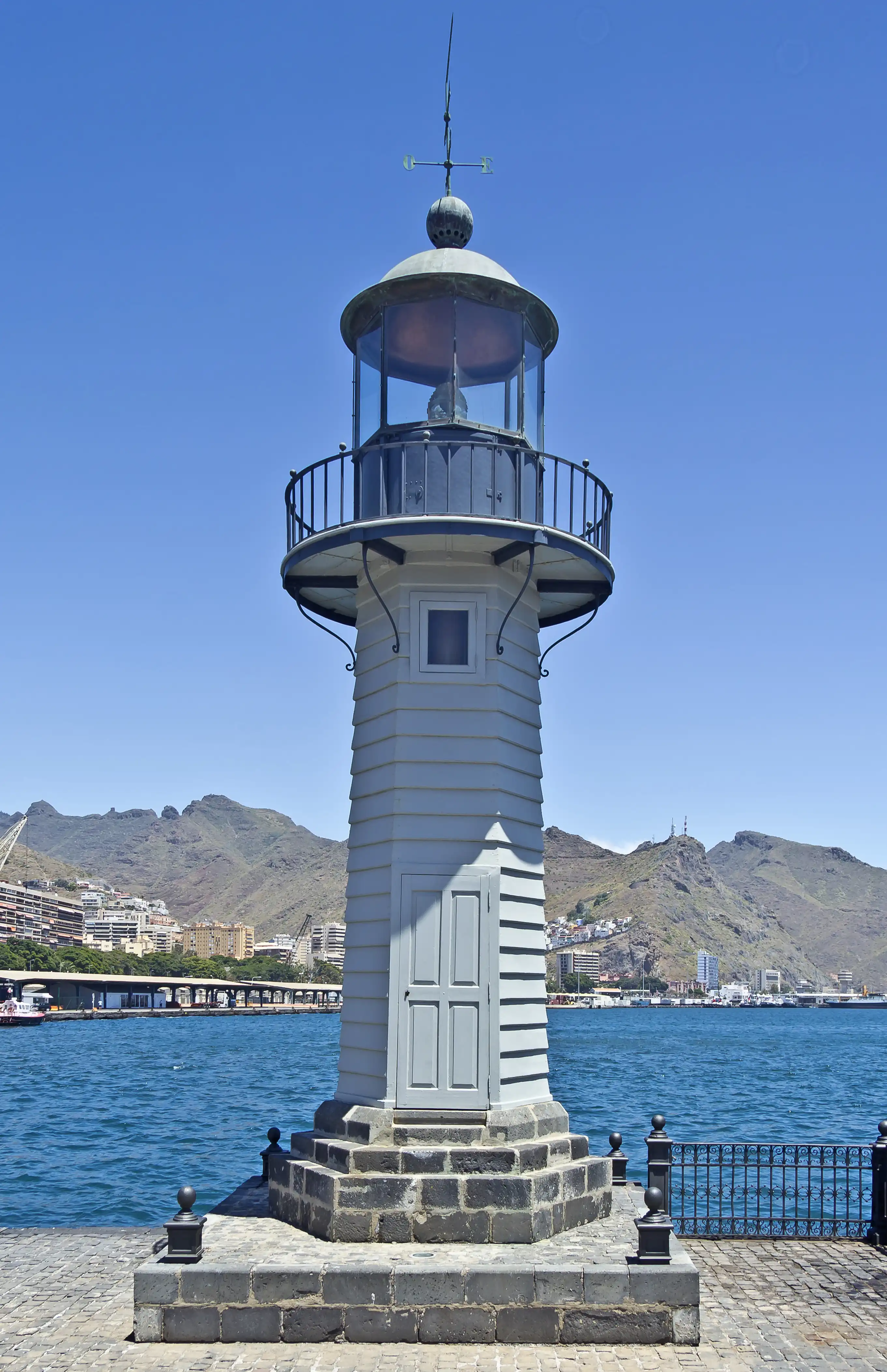 Este faro, construido por Henry Leapaute, llegó proveniente de París en mayo de 1862. La primera vez que se encendió fue el 31 de diciembre de 1863 convirtiéndose en la segunda señal luminosa que entraba en funcionamiento en Canarias ya que dos años antes se había habilitado otra señal que advertía del extremo de la escollera del mismo muelle Sur aún en obras. Su localización, al final del segundo tramo del muelle, resultó ser también el motivo de su desconexión, pues con las sucesivas prolongaciones del muelle perdió funcionalidad y finalmente cesó su actividad en junio de 1954. En 1976 fue desmontada y guardada en un almacén propiedad del Puerto. Ocho años después, a modo de homenaje a la historia del Puerto, se reinstaló en la entrada del muelle por la Plaza de España. Junto a ella se ubicaron una locomotora, una hélice de bronce originaria del Crucero Canarias, y también una grúa a vapor que había faenado con las gabarras que trasladaban el carbón a los depósitos del Puerto. Allí permaneció hasta que en 1991 a causa de nuevas obras en la infraestructura portuaria se retiró otra vez. El 30 de abril de 1994 la farola del mar fue entregada nuevamente a la ciudad dentro de los actos conmemorativos del V centenario de la fundación de la ciudad.[1]