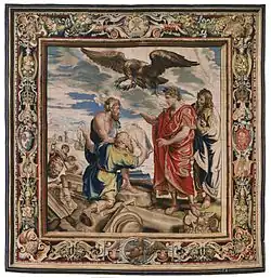 - ↑ a b c d e f Dubon, David (1964). Phaidon Press, ed. Tapestries from the Samuel H. Kress Collection at the Philadelphia Museum of Art: The History of Constantine the Great Designed by Peter Paul Rubens and Pietro da Cortona. Londres. p. 152.