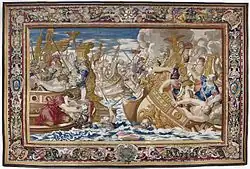 Este tapiz complementa a los de Rubens al mostrar la segunda mitad de la campaña contra Licinio. En esta segunda confrontación, la victoria de Crispo en el mar convirtió a su padre en el gobernador supremo del este y del oeste.[6]