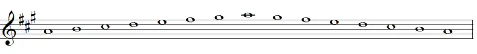 | La, Si, Do♯, Re, Mi, Fa♯, Sol♯, La | ||
