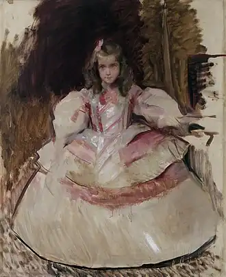 La niña que aparece en el cuadro es hija de Rodrigo Figueroa y Torres, Duque de Tovar y amigo personal de Sorolla, quien la retrata con ocho años vestida como una menina del siglo XVII.[1]
