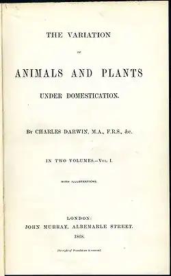 La variación de animales y plantas domesticados es un libro escrito por Charles Darwin que fue publicado por primera vez en enero de 1868.[1]