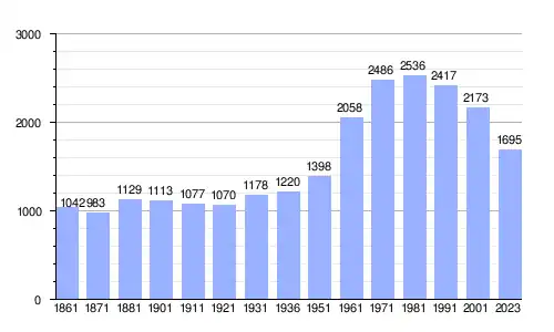 | Gráfica de evolución demográfica de Laigueglia entre 1861 y 2023 |