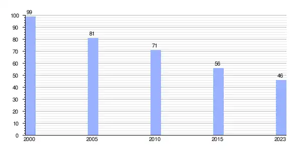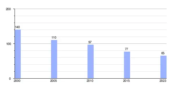 | Gráfica de evolución demográfica de Lamas (parroquia) entre 2000 y 2023 |