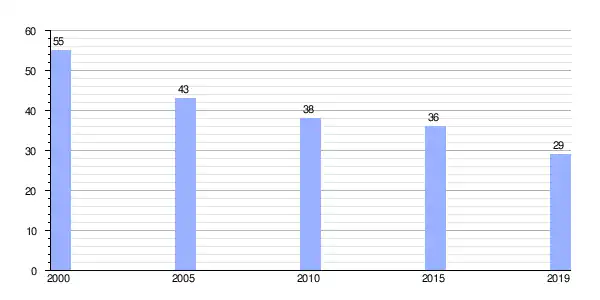 | Gráfica de evolución demográfica de Lamas de Moreira (aldea) entre 2000 y 2019 |