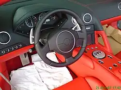 La palanca de cambios y la selectora son de acero, como es tradición en Lamborghini; junto a ellos se encuentran los botones del elevalunas, el de las luces de emergencia y el de la tapa del tanque de combustible, cuya capacidad es de 100 litros (26,4 galAm).