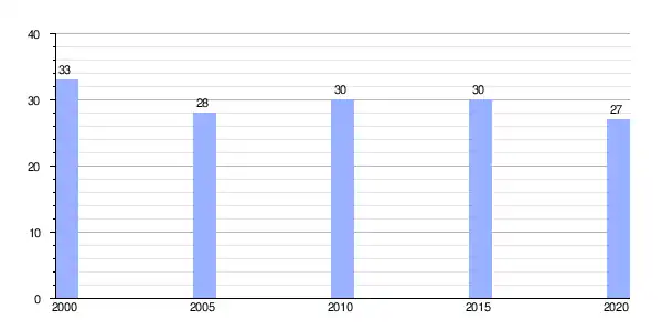 | Gráfica de evolución demográfica de Lamela (aldea) entre 2000 y 2020 |